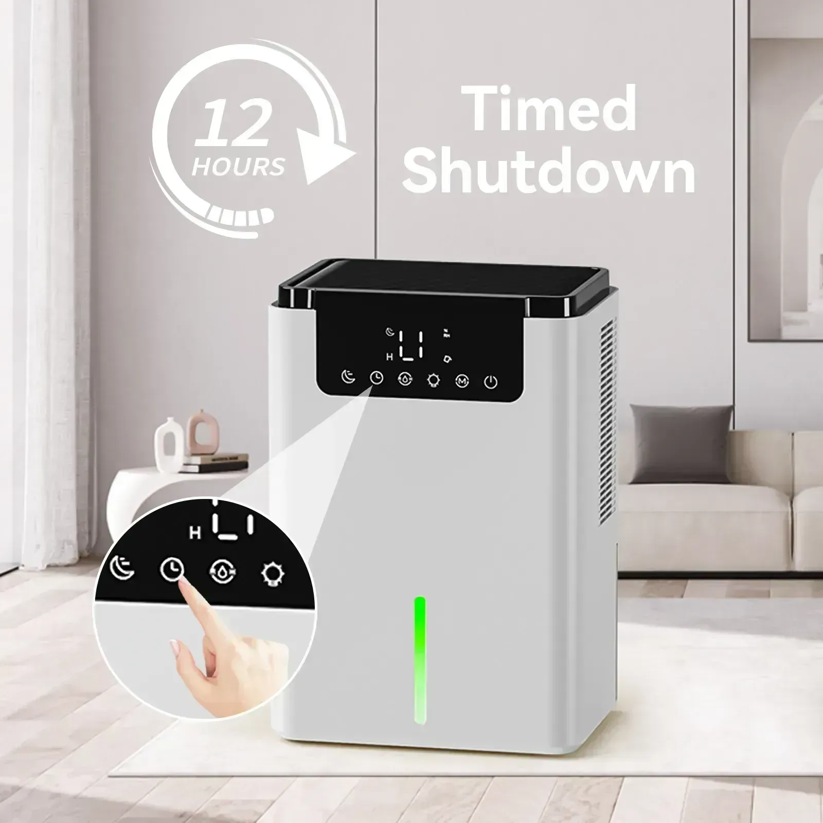 - Intuitive LED Touch Screen: Displays real-time humidity with simple touch controls for the whole family.