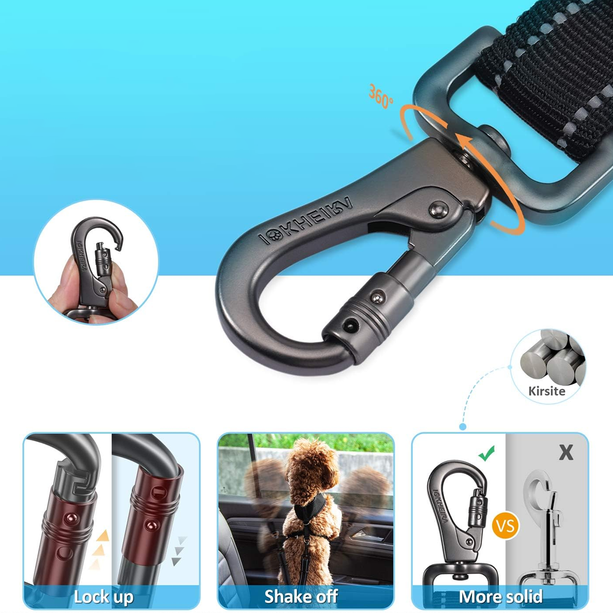 1. ✅ 360° Rotating Carabiner Clip (No More Tangles!) No matter how your dog turns or adjusts its position, the clip swivels a full 360 degrees—completely eliminating leash tangles and knots. This ensures smoother movement and greater comfort for your pet.